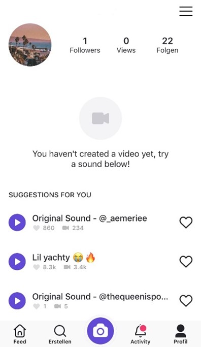 - Beim Öffnen der App kommt der Benutzer auf die „For-You-Page“ (Für-Dich-Seite). Dort werden ihm kurze Videos angezeigt.